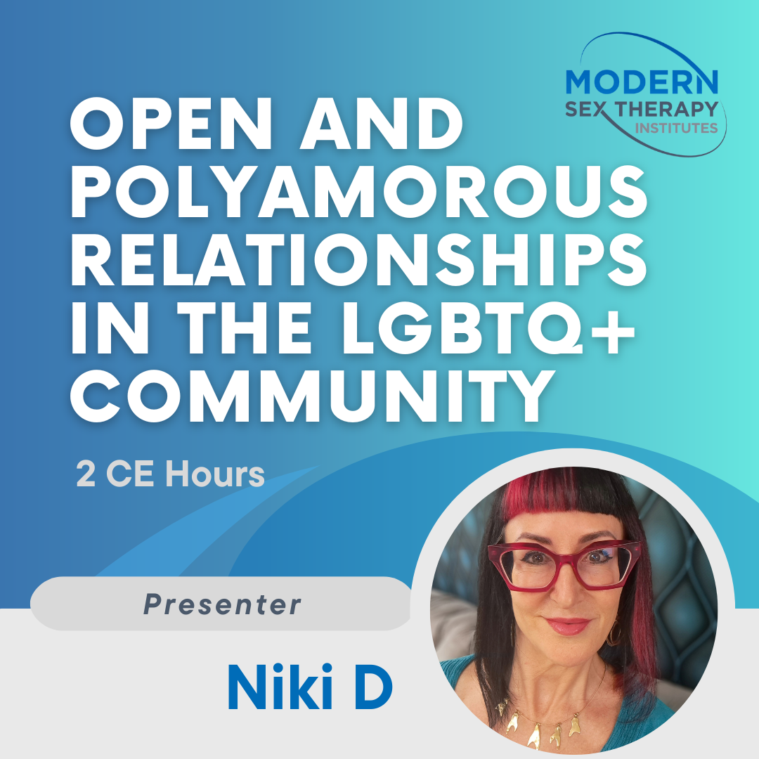 Modern Sex Therapy Institutes (MSTI), provider #1787, is approved to offer social work continuing education by the Association of Social Work Boards (ASWB) Approved Continuing Education (ACE) program. Regulatory boards are the final authority on courses accepted for continuing education credit. ACE provider approval period: [1/7/22-1/7/26].